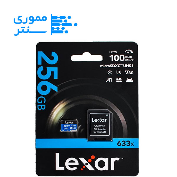 کارت حافظه microSDXC لکسار 256 گیگ مدل 633X سرعت 100MB/sLexar 256GB microSDXC Memory Card Model 633X Speed ​​100MB/s