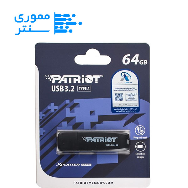 فلش مموری پاتریوت مدل XPORTER core USB3.2 ظرفیت 64 گیگابایتPatriot XPORTER core USB 3.2 flash drive, 64GB capacity
